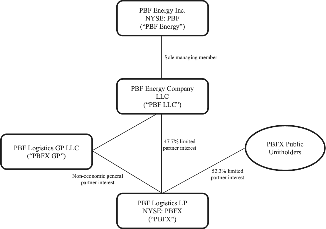A: | PBF Energy and PBFX have agreed to combine by merging Merger Sub, an indirect subsidiary of PBF Energy, with and into PBFX, with PBFX surviving as an indirect subsidiary of PBF Energy, owned 99% by PBF LLC and 1% by PBFX Holdings. These transactions will occur pursuant to the terms of the Merger Agreement that is described in this proxy statement/prospectus and attached as Annex A. Upon completion of the Merger, PBFX Common Units will cease to be listed on the NYSE and will subsequently be deregistered under the Exchange Act. You are receiving this document because the Merger cannot be completed without approval of a majority of the PBFX Common Units. In connection with the execution of the Merger Agreement, PBF Energy and PBF LLC entered into a Support Agreement with PBFX, pursuant to which, among other things, PBF Energy agrees to cause PBF LLC, in its capacity as a limited partner of PBFX, to vote its PBFX Common Units in favor of the Merger Agreement and the transactions contemplated thereby, including the Merger. As of September 28, 2022, PBF LLC owned 29,953,631 PBFX Common Units (representing approximately 47.7% of the issued and outstanding PBFX Common Units). |