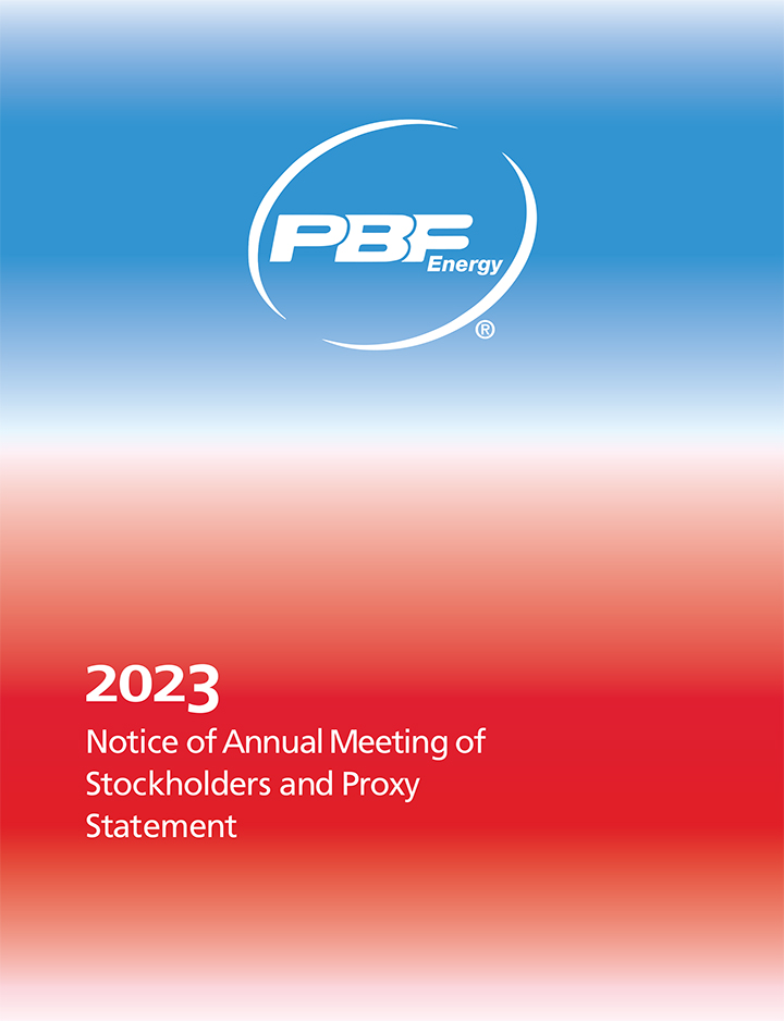 Our Board of Directors (the “Board”) is soliciting proxies to be voted at the Annual Meeting of Stockholders on May 3, 2023 (the “Annual Meeting” or the “Meeting”). The accompanying notice describes the time, place, and purposes of the Annual Meeting. Action may be taken at the Annual Meeting or on any date to which the meeting may be adjourned. Unless otherwise indicated the terms “PBF,” “PBF Energy,” “the Company,” “we,” “our,” and “us” are used in this Notice of Annual Meeting and Proxy Statement to refer to PBF Energy Inc., to one or more of our consolidated subsidiaries, or to all of them taken as a whole.