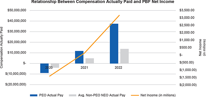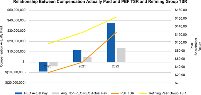 The Board recommends a vote, on an advisory basis, “FOR” this proposal to approve PBF’s 2022 named executive officer compensation. |