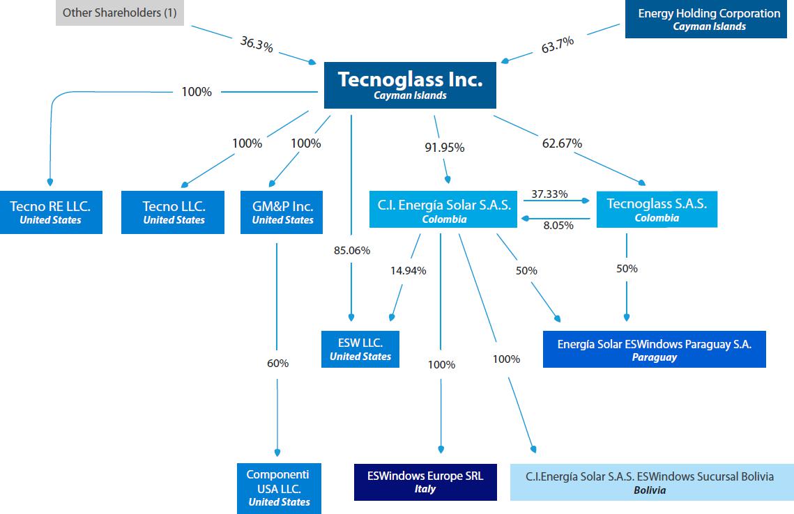 Unless otherwise stated in this prospectus supplement, references to “Tecnoglass”, “our company,” “we,” “us,” “our,” and similar references to refer to Tecnoglass Inc., formerly named Andina Acquisition Corporation, and its subsidiaries. References to “Tecnoglass Holding” are to our wholly owned subsidiary, Tecno Corporation. References to “TG” are to Tecnoglass Holding’s indirect subsidiary, Tecnoglass S.A.S. References to “ES” are to Tecnoglass Holding’s indirect subsidiary C.I. Energía Solar S.A.S E.S. Windows. References to “ESW” are to ES Windows LLC. References to “GM&P” are to Giovanni Monti and Partners Consulting and Glazing Contractors, Inc.