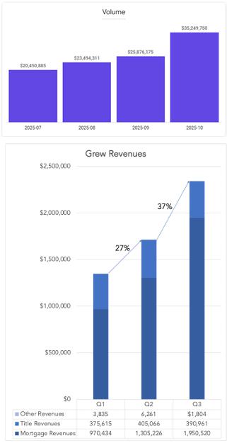 October was the strongest month since the mortgage industry downturn, with $35.3M in originations, beating September by 36% and already representing 50% of Q3 2025 total originations with a Q4 2025 projected increase of approximately 65% vs Q3 2025