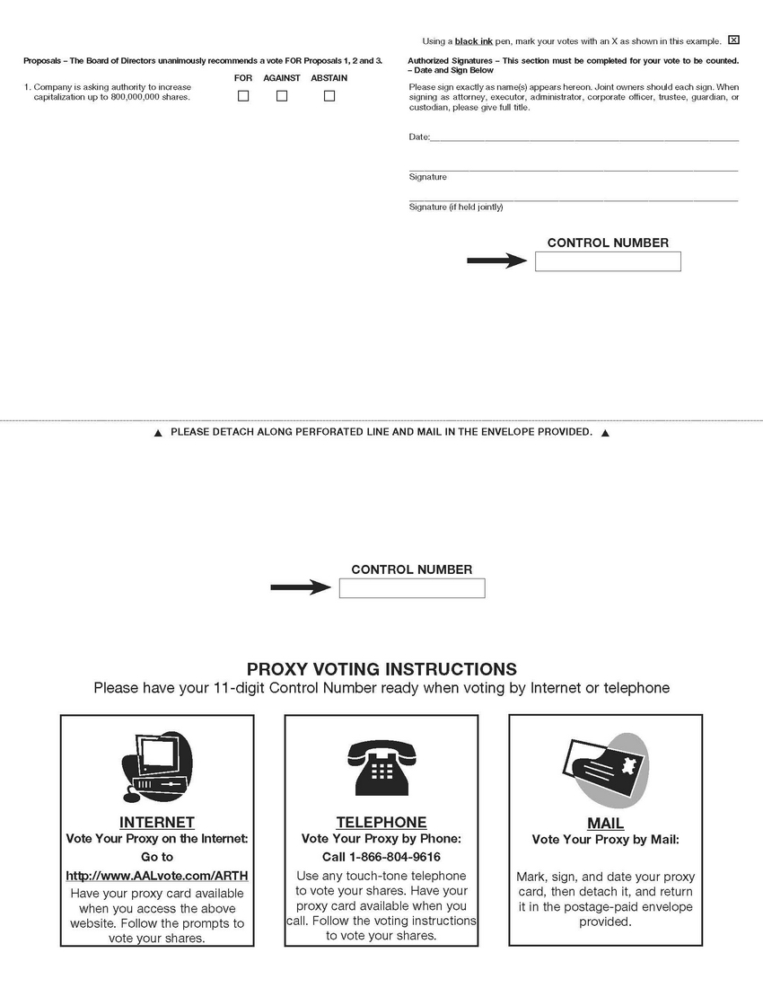 | · | Register at http://viewproxy.com/arth/2020 by 11:59 PM eastern time on June 29, 2020. As part of the registration process you will need to enter your name, phone number, and e-mail address, and provide a copy of the legal proxy (which may be uploaded to the registration website or sent via e-mail to virtualmeeting@viewproxy.com), following which you will receive an e-mail confirming your registration, your Control Number, as well as the password to attend the Special Meeting. |