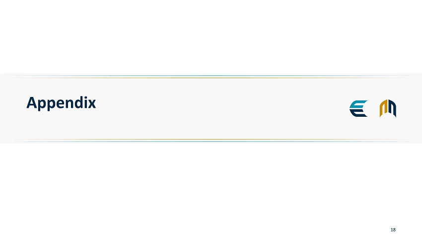 17 ETRN Emerging as a Strong C - Corp Business Fundamentals support long - term value creation Revenue from Firm Reservation / MVCs (1) Leverage Ratio (2) Retained Free Cash Flow ($B) (2) Highly predicable cash flow profile Long - term contracts Retained Free Cash Flow (after total CAPEX and dividends) Clear de - levering plan Forecasts assume MVP in - service date of 12/31/2020. (1) Pro forma revenue projections do not include revenue contributions from MVP or MVP Southgate, which are accounted for as equi ty investments. (2) Pro forma ETRN Consolidated Debt / (pro forma ETRN Adjusted EBITDA + deferred revenue). See slide 30 for important disclosure s r egarding the non - GAAP financial measures adjusted EBITDA & retained free cash flow. ~58% of 2019 revenue from firm reservation / MVCs ~4.0x target exiting 2021 ~$1 billion Retained Free Cash Flow 2021 - 2023