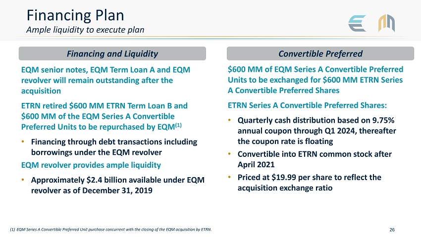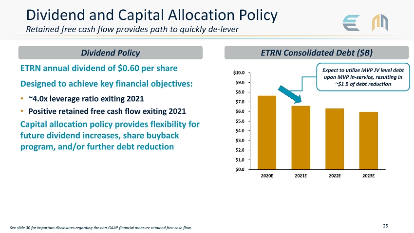 Organizational Chart 24 59.9% LP Interest Non - economic GP Interest 40.1% LP Interest EQM Public ETRN Public Convertible Preferred 19.9% Interest $1,200 MM Preferred 80.1% Interest Current Structure Pro Forma Structure 100.0% LP Interest Non - economic GP Interest ETRN Public (Private) Convertible Preferred 94.0% Interest 6.0% Interest $600 MM Preferred