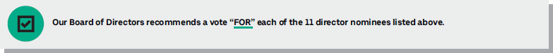 | • | The Nominating and Governance Committee and the Board of Directors evaluate each nominee based on the selection criteria listed in the Corporate Governance Guidelines, including those nominees recommended by stockholders. |