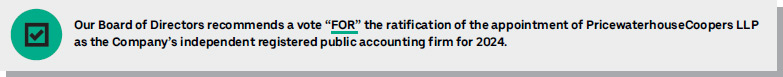 • To ratify the appointment of PricewaterhouseCoopers LLP as our independent registered public accounting firm for 2024. |