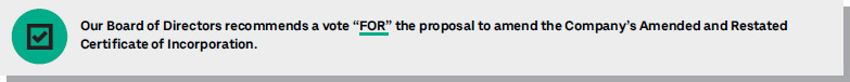 • To approve an amendment to the Company’s Certificate of Incorporation adding a provision regarding exculpation of officers in accordance with Delaware law. |