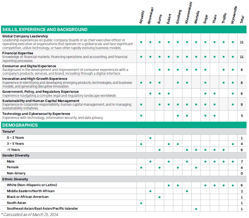 In 2023, we published a combined Environmental, Social, and Governance report and People and Culture report, as well as a Civil Rights Assessment. The Board continues to monitor our progress in these areas.