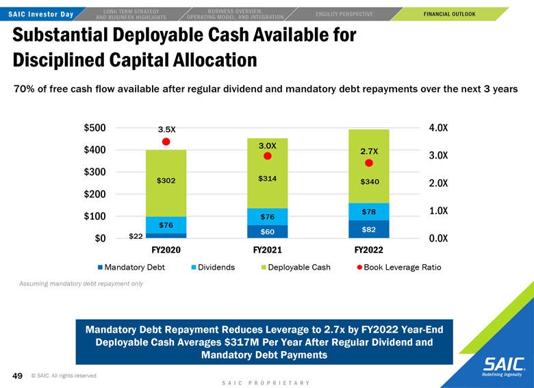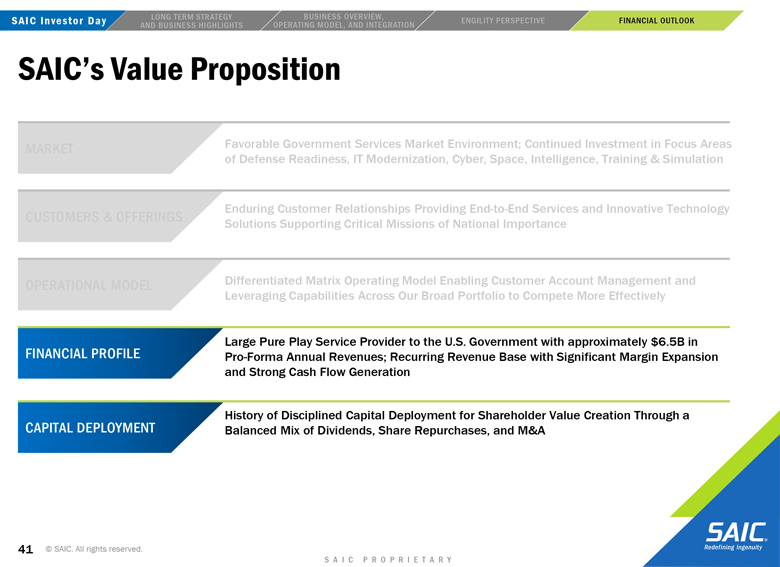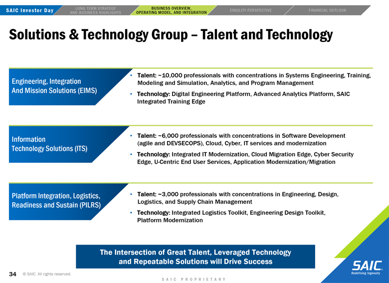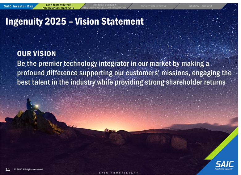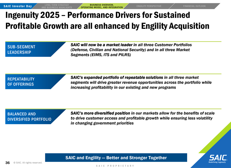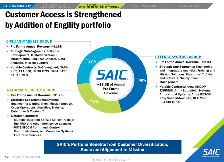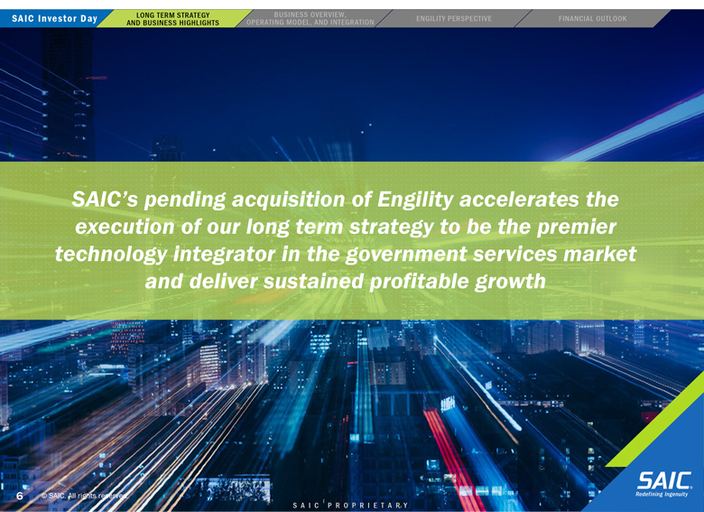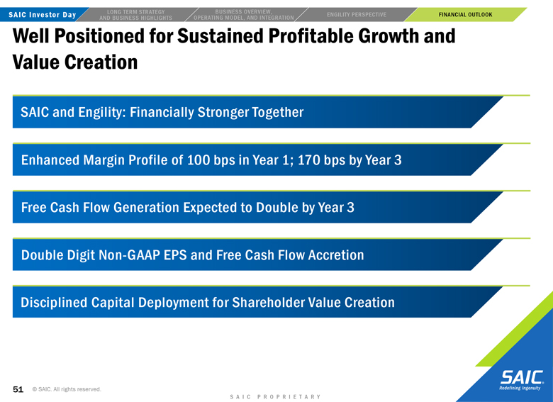 “forward-looking” information within the meaning of the Private Securities Litigation Reform Act of 1995 that involves risks and uncertainties concerning the proposed transaction between SAIC and Engility, SAIC’s and Engility’s expected