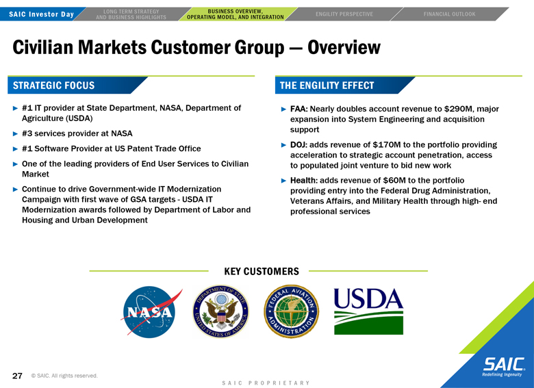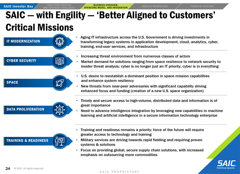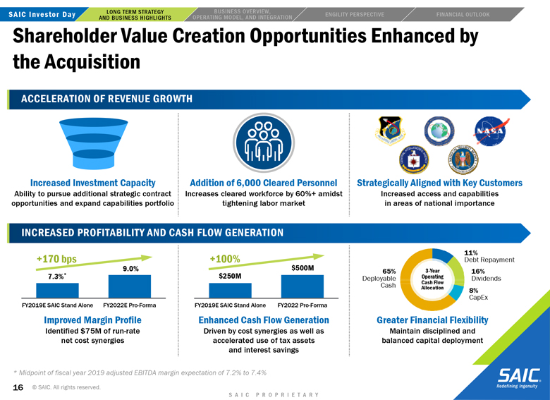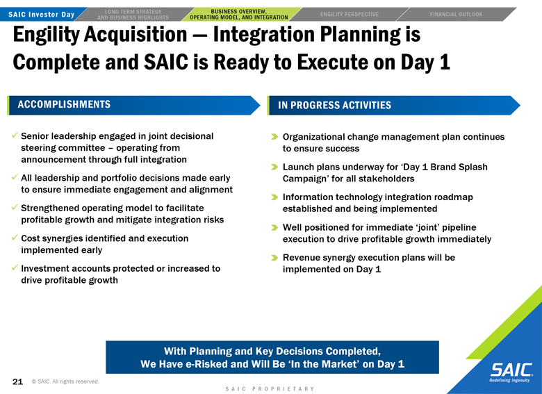 to the closing of the transaction may not be satisfied; the risk that Engility will not be integrated successfully into SAIC following the consummation of the proposed transaction and the risk that revenue opportunities, cost savings, synergies
