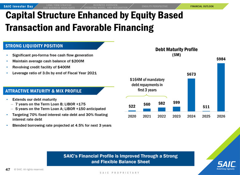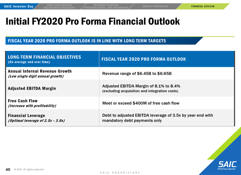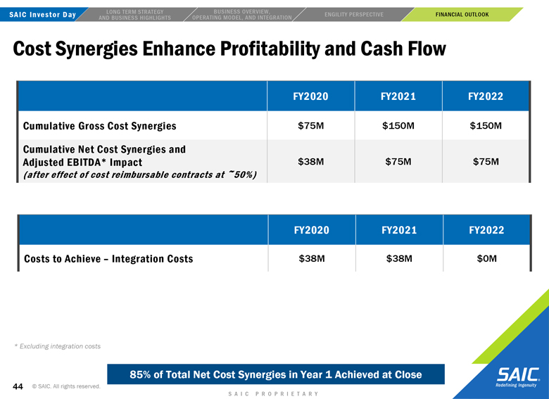 financial performance, and SAIC’s and Engility’s strategic and operational plans. In some cases, you can identify forward-looking statements by words such as “expects,” “intends,” “plans,” “anticipates,” “believes,” “estimates,” and similar