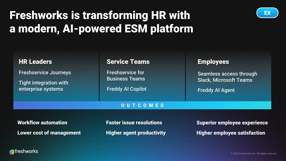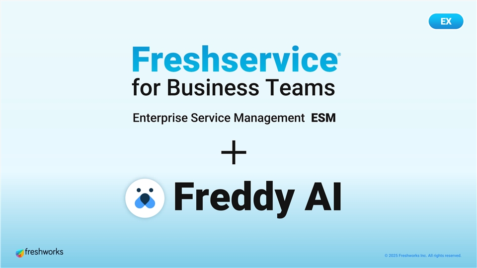 EX EX for Business Teams Enterprise Service Management ESM Freddy AI © 2025 Freshworks Inc. All rights reserved.