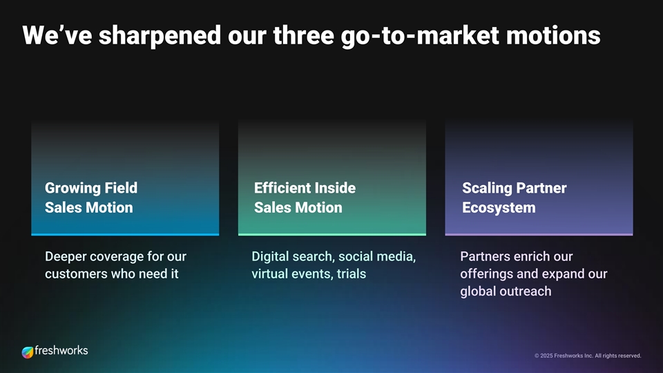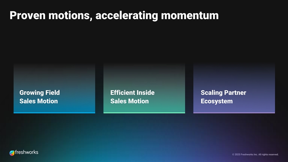 Proven motions, accelerating momentum Growing Field Efficient Inside Scaling Partner Sales Motion Sales Motion Ecosystem © 2025 Freshworks Inc. All rights reserved.