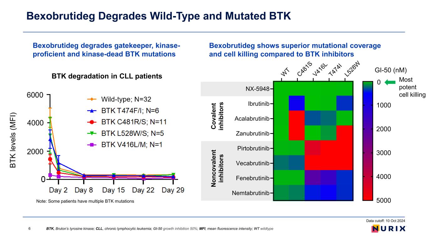 Bexobrutideg – The First “deg” Novel MOA Against a Clinically and Commercially Proven Target 5 Addresses BTK scaffolding function unlike current BTK inhibitors Acts catalytically driving degradation at low free-plasma concentrations Demonstrated robust clinical activity in difficult to treat B- cell malignancies Active against wildtype BTK and can overcome treatment- emergent resistance mutations Crosses the blood brain barrier and demonstrates clinical activity in the CNS Has potential to address significant unmet needs in autoimmune and inflammatory disorders BTK, Bruton's tyrosine kinase; CNS, central nervous system; MOA, mechanism of action.