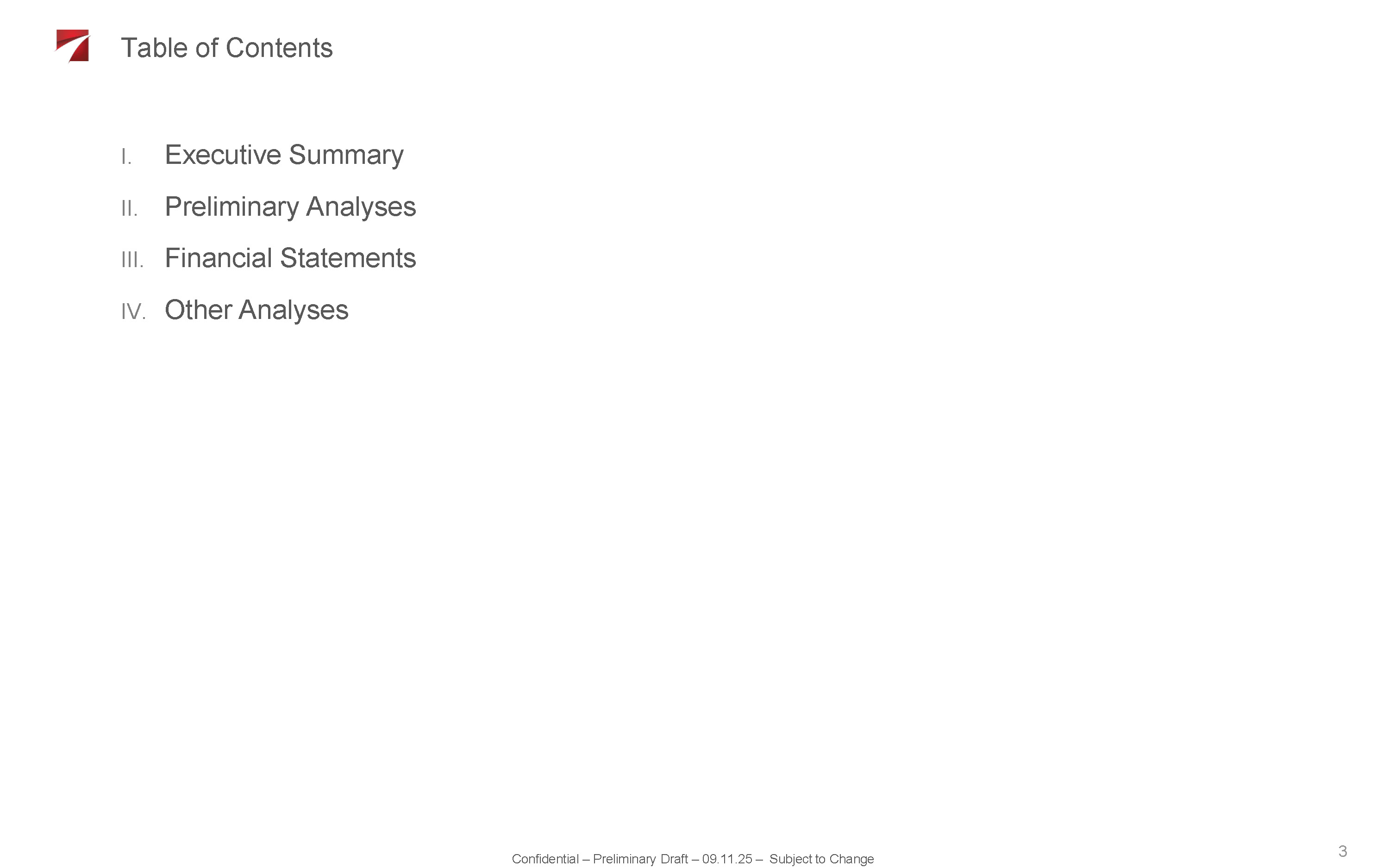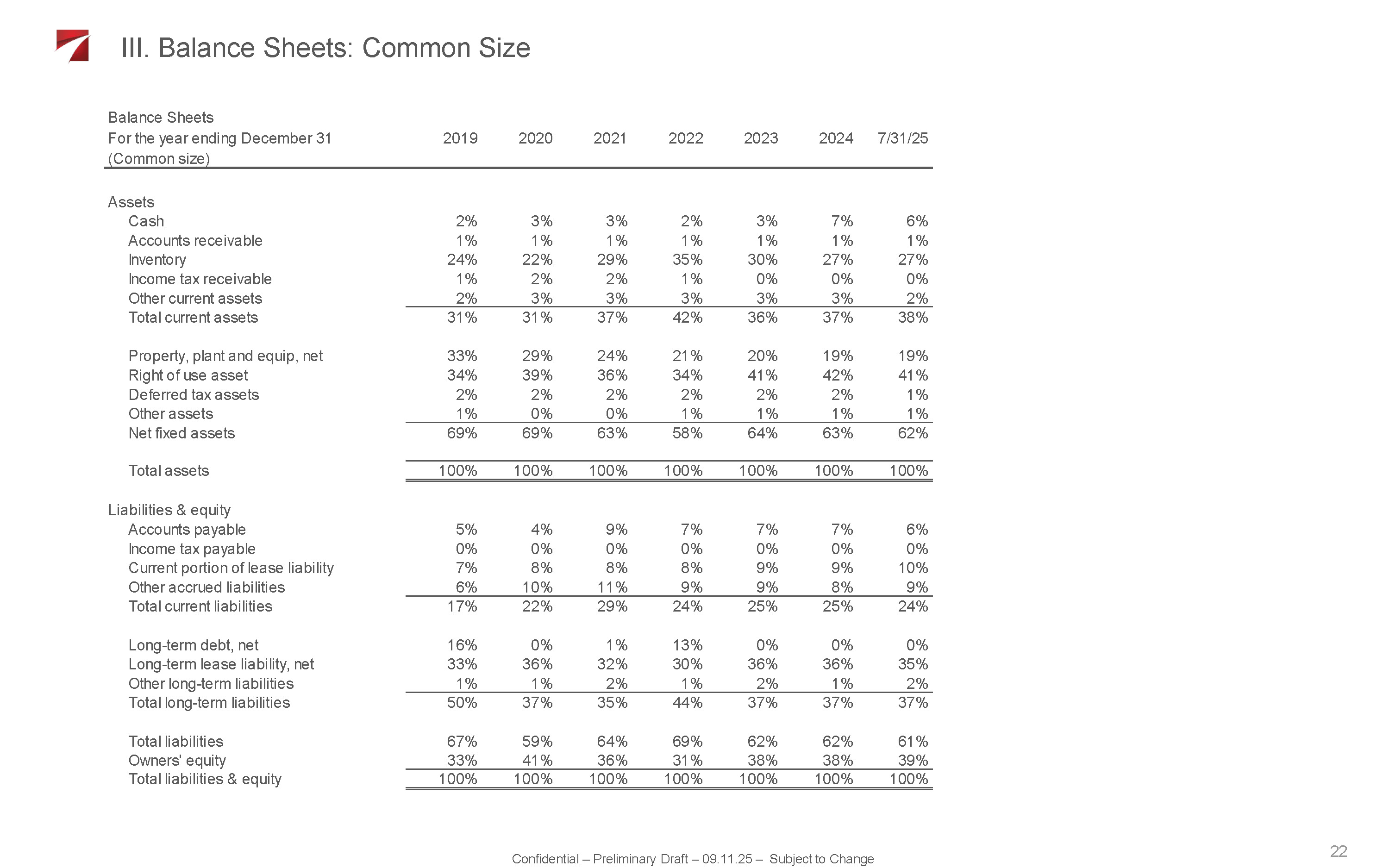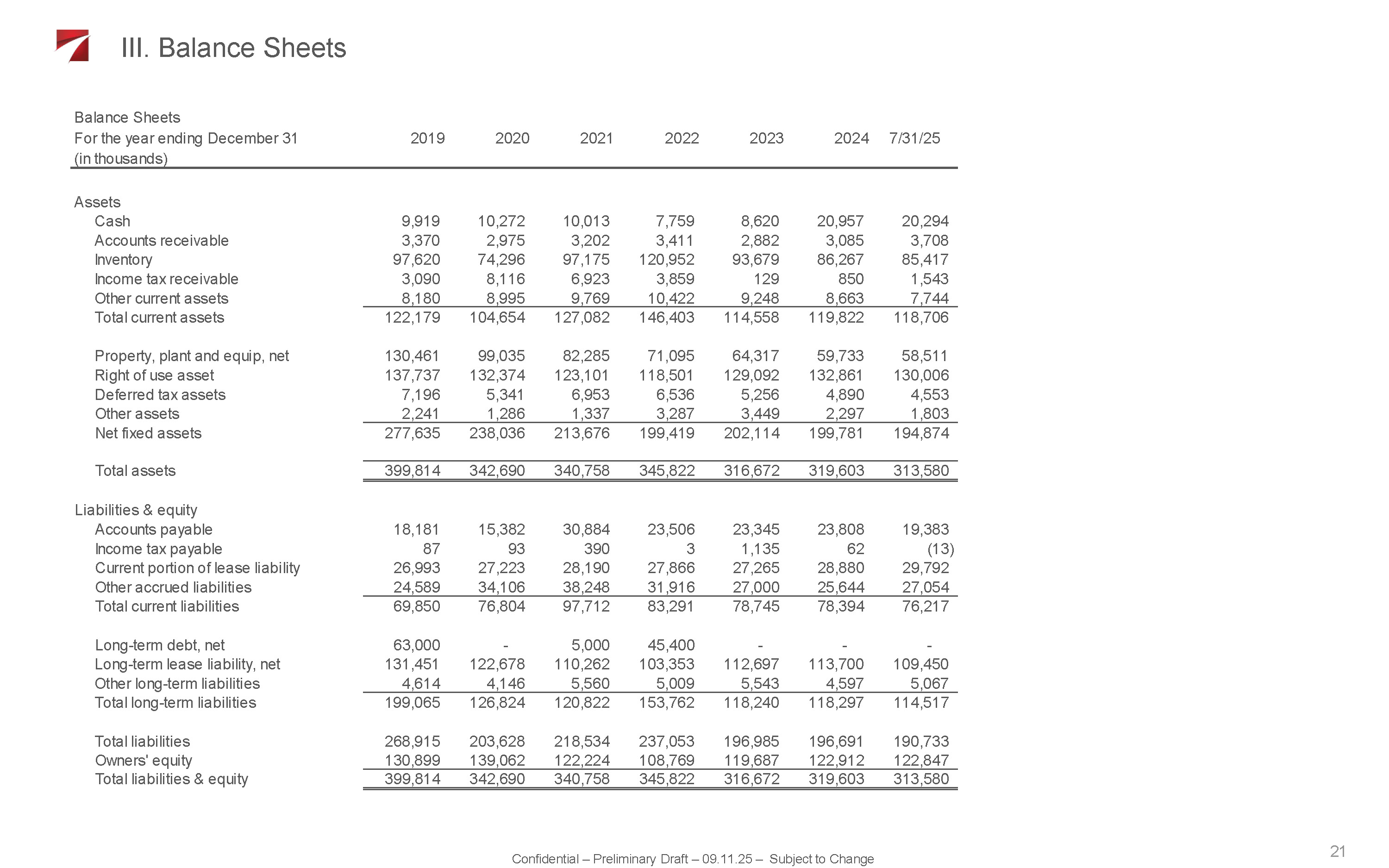III. Balance Sheets  18  Confidential – Preliminary Draft – 09.11.25 – Subject to