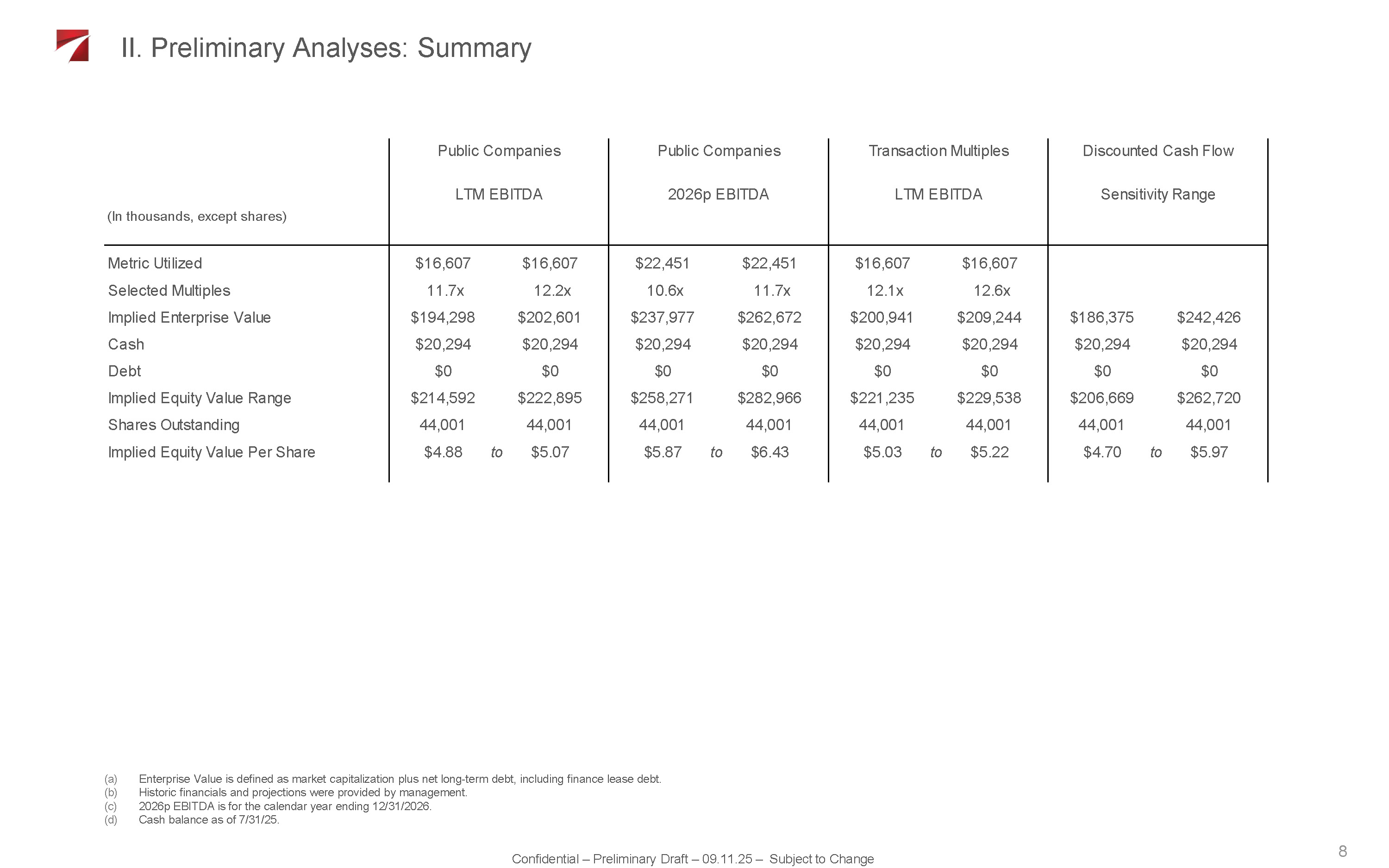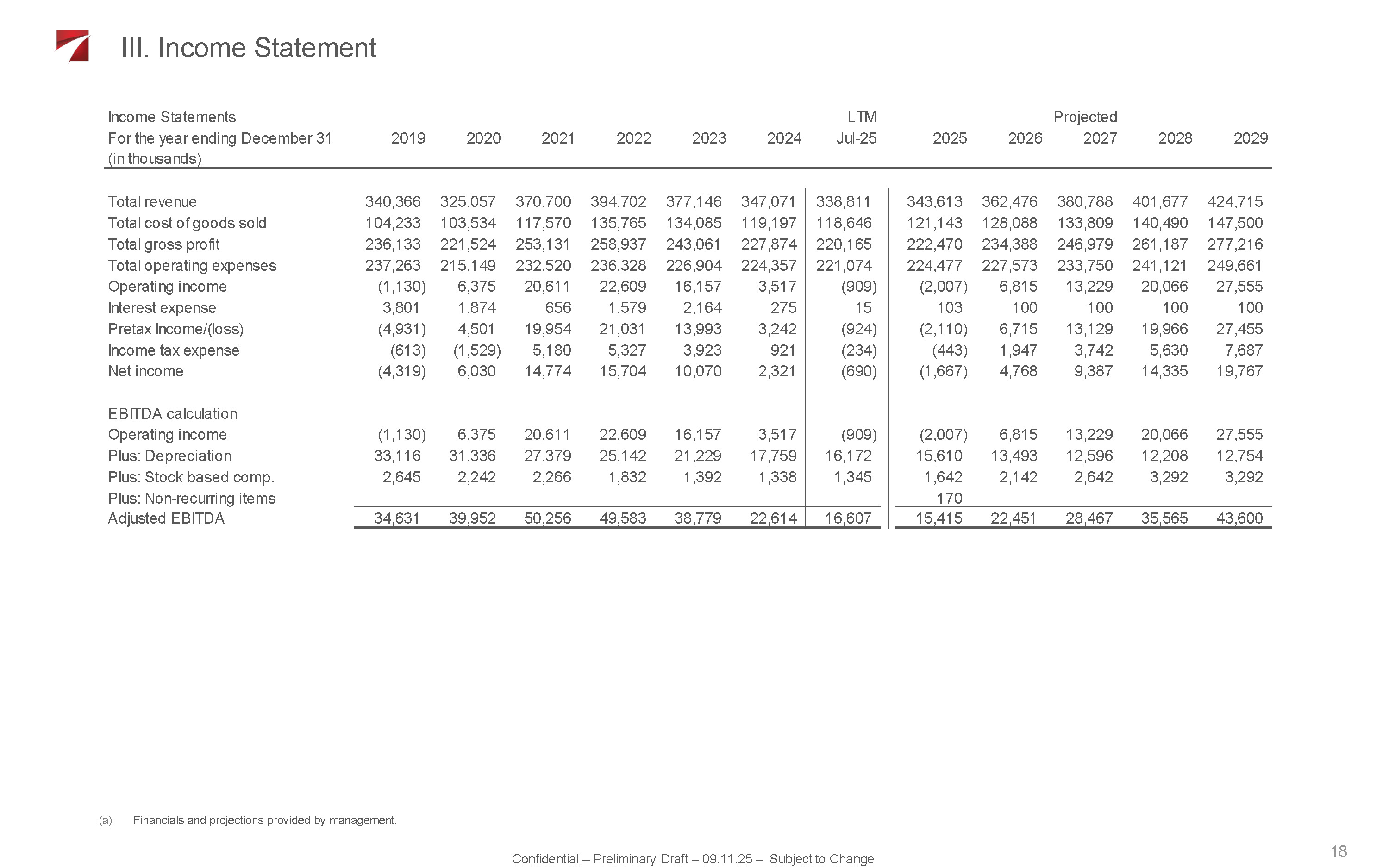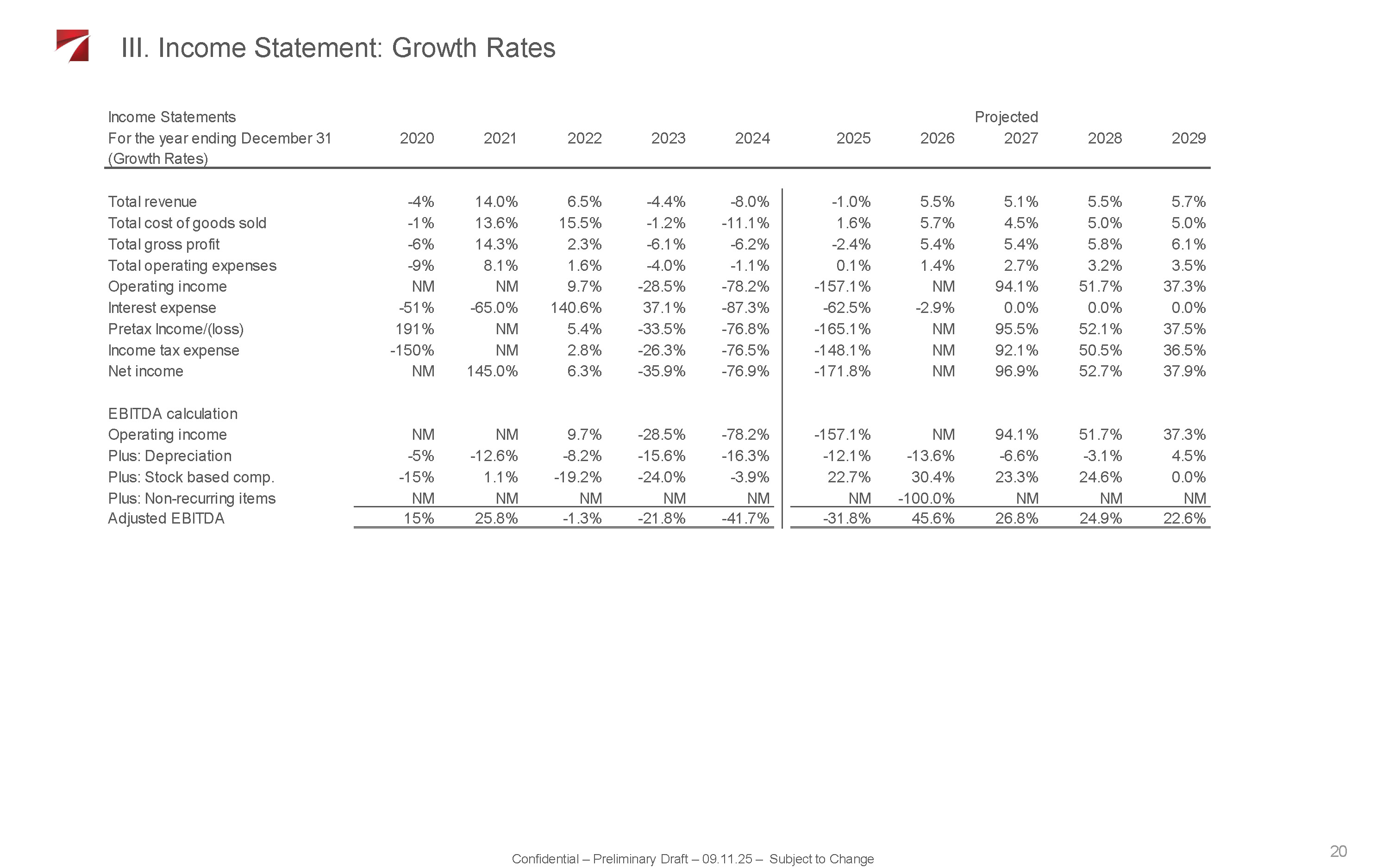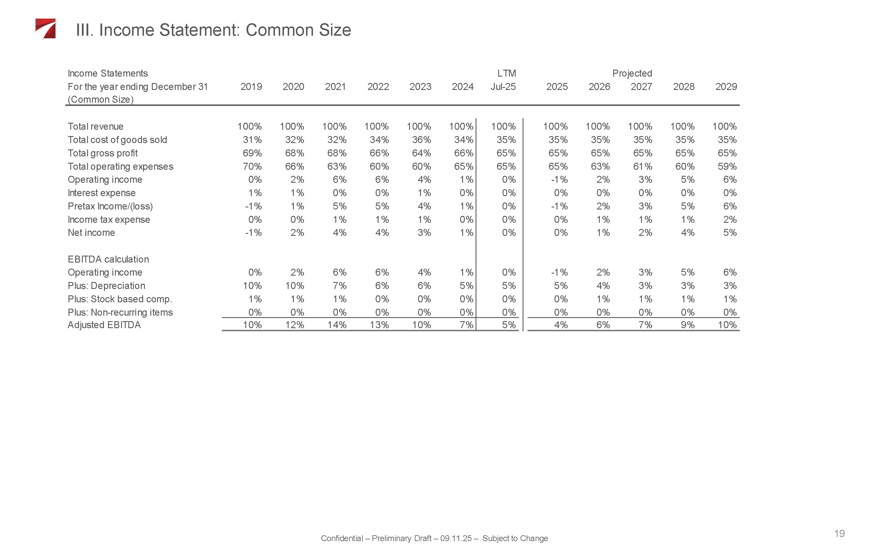 III. Balance Sheets  18  Confidential – Preliminary Draft – 09.11.25 – Subject to