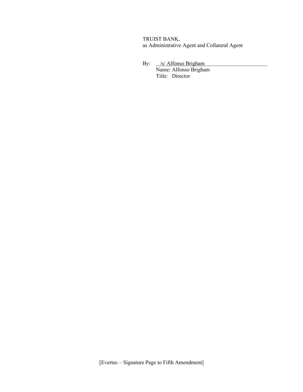 [Evertec – Signature Page to Fifth Amendment] TRUIST BANK, as Administrative Agent and Collateral Agent By: /s/ Alfonso Brigham Name: Alfonso Brigham Title: Director