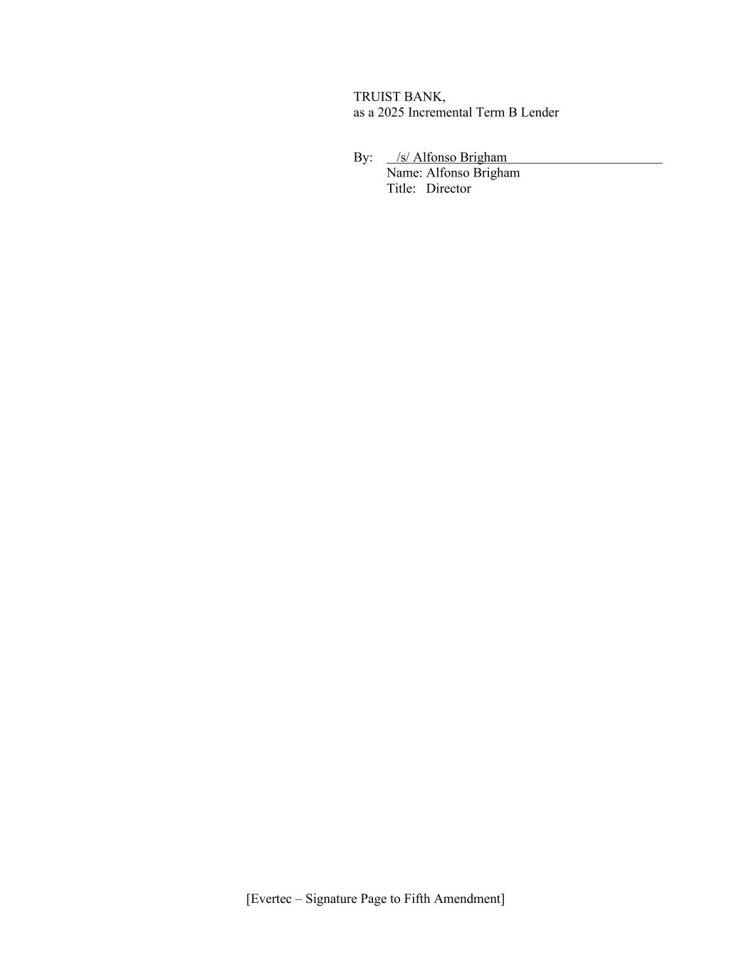 [Evertec – Signature Page to Fifth Amendment] TRUIST BANK, as a 2025 Incremental Term B Lender By: /s/ Alfonso Brigham Name: Alfonso Brigham Title: Director