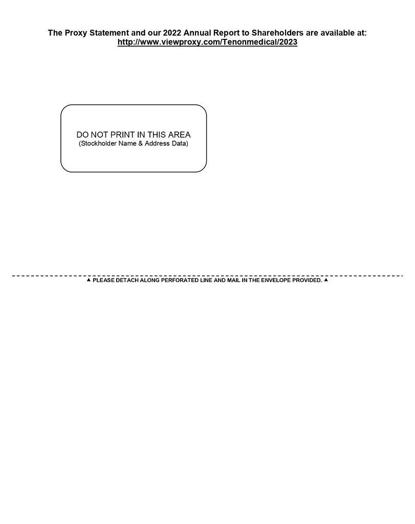 | The Notice to Stockholders, Proxy Statement and Annual Report are available at www.viewproxy.com/Tenonmedical/2023. |