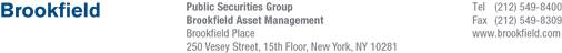 Certain statements made in this news release that are not historical facts are referred to as “forward-looking statements” under the U.S. federal securities laws. Actual future results or occurrences may differ significantly from those anticipated in any forward-looking statements due to numerous factors. Generally, the words “believe,” “expect,” “intend,” “estimate,” “anticipate,” “project,” “will” and similar expressions identify forward-looking statements, which generally are not historical in nature. Forward-looking statements are subject to certain risks and uncertainties that could cause actual results to differ from the historical experience of Brookfield Investment Management Inc. and the Funds managed by Brookfield Investment Management Inc. and its present expectations or projections. You should not place undue reliance on forward-looking statements, which speak only as of the date they are made. Brookfield Investment Management Inc. and the Funds managed by Brookfield Investment Management Inc. undertake no responsibility to update publicly or revise any forward-looking statements.