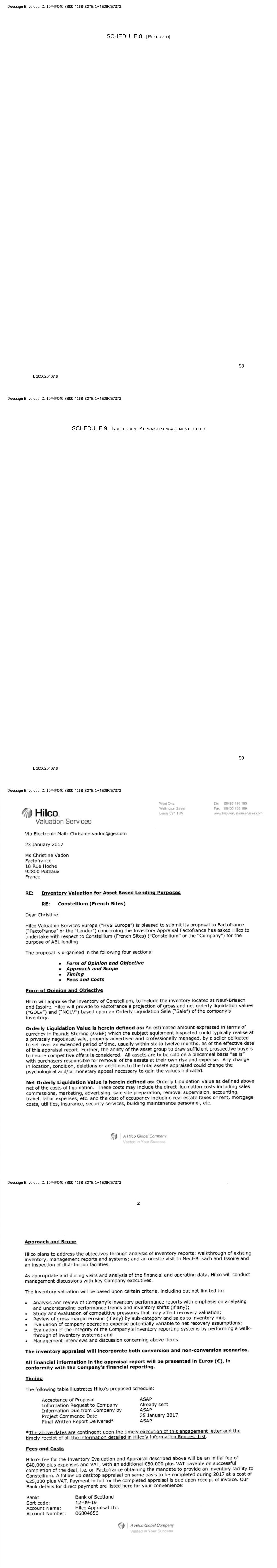 98 L 105020467.8 SCHEDULE 8. [RESERVED] Docusign Envelope ID: 19F4F049-8B99-416B-B27E-1A4E06C57373 99 L 105020467.8 SCHEDULE 9. INDEPENDENT APPRAISER ENGAGEMENT LETTER Docusign Envelope ID: 19F4F049-8B99-416B-B27E-1A4E06C57373 Docusign Envelope ID: 19F4F049-8B99-416B-B27E-1A4E06C57373 Docusign Envelope ID: 19F4F049-8B99-416B-B27E-1A4E06C57373
