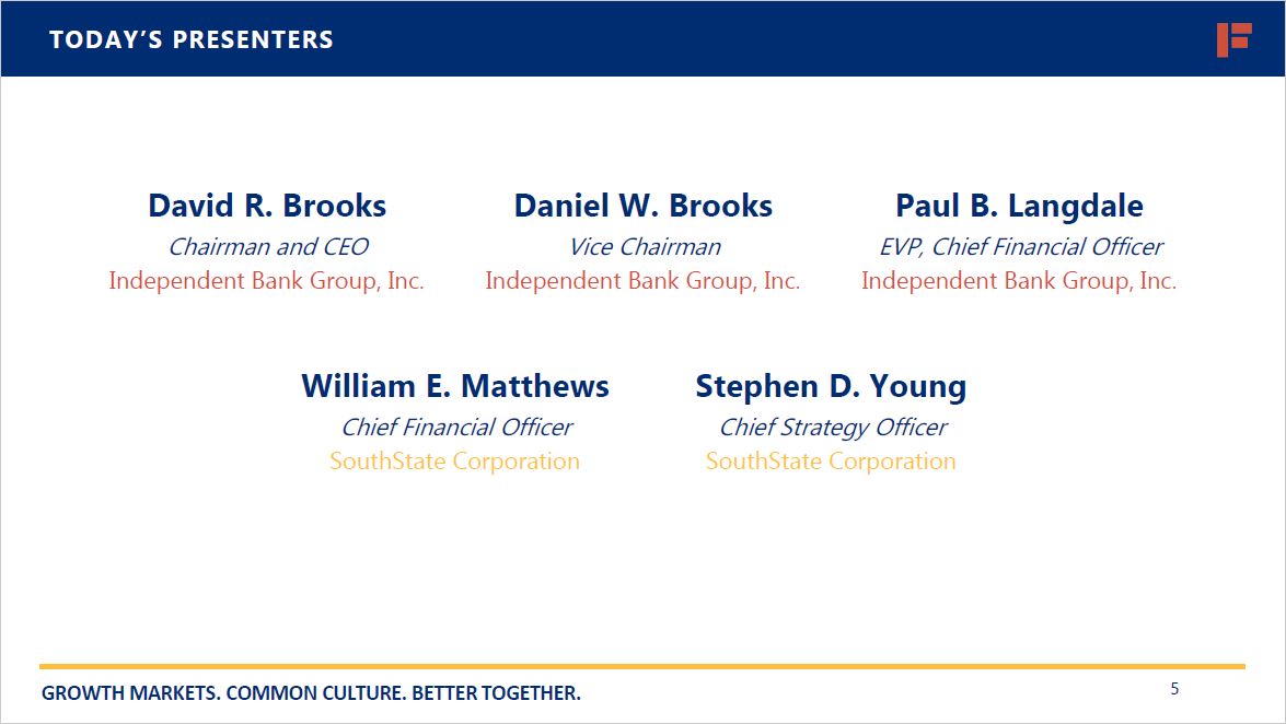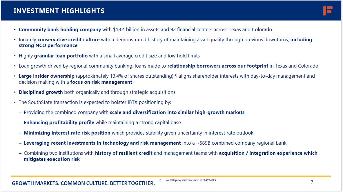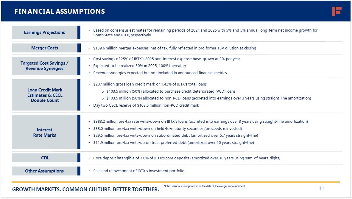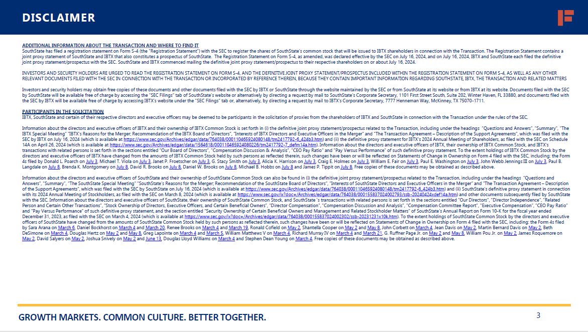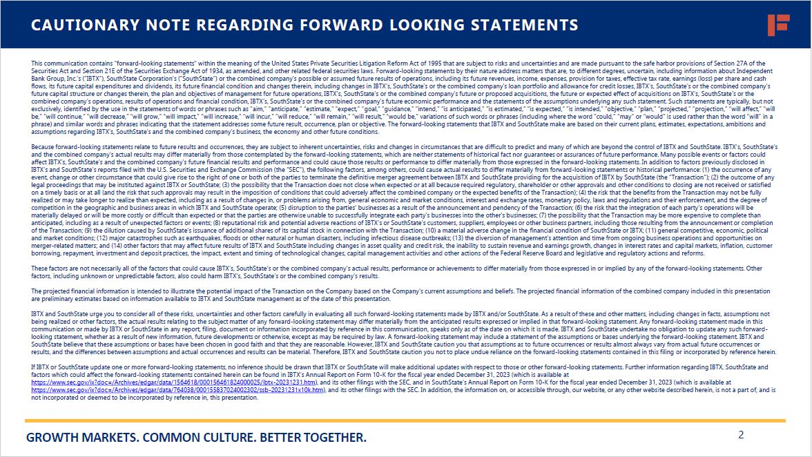 included in this presentation are preliminary estimates based on information available to IBTX and SouthState management as of the date of this presentation. IBTX and SouthState urge you to consider all of these risks, uncertainties and