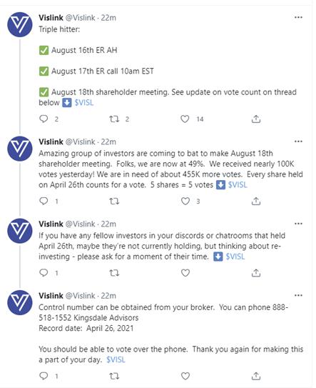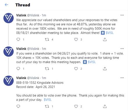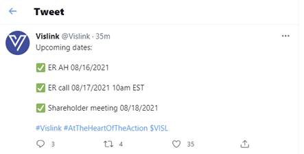 Social Media Posts Regarding the 2021 Annual Meeting of Stockholders of Vislink Technologies, Inc.