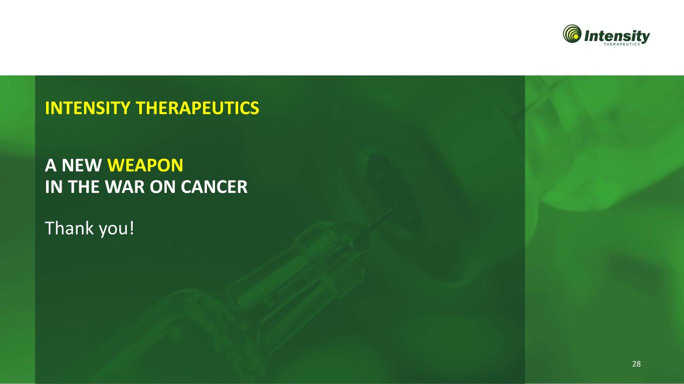 28 INTENSITY THERAPEUTICS A NEW WEAPON IN THE WAR ON CANCER Thank you!