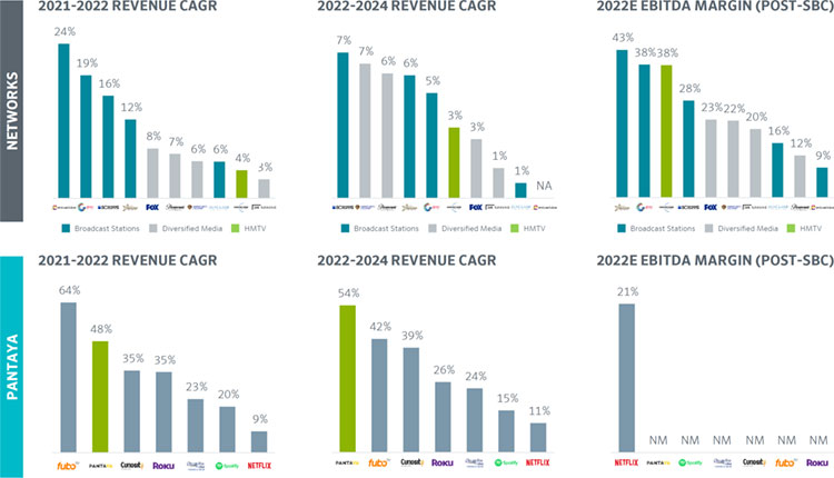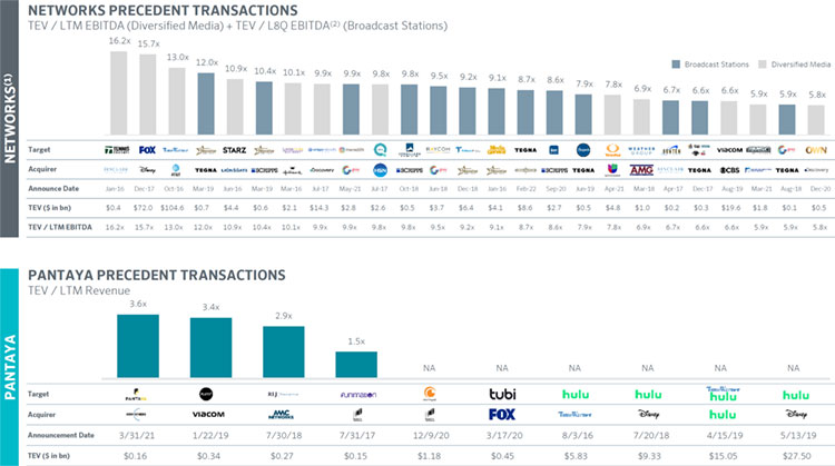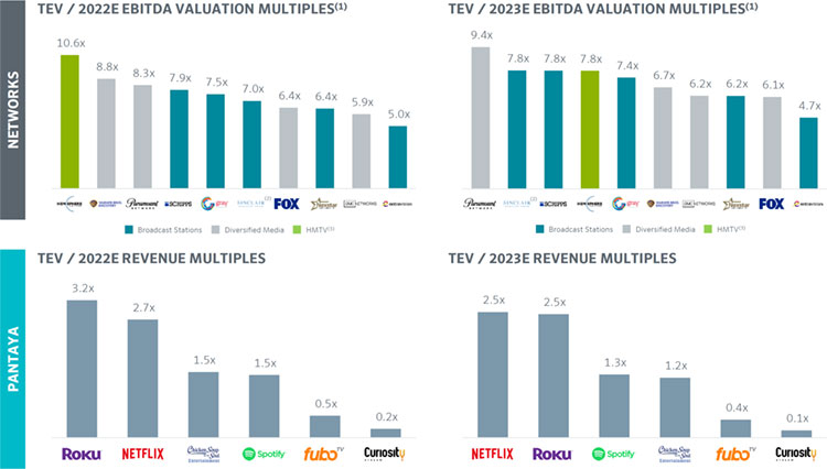 | In April 2021, HMTV acquired Lionsgate‘s 75% stake in Pantaya that HMTV did not already own at a $165mm valuation (on a 100% basis). |