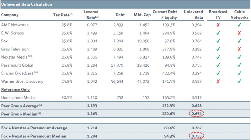| (2) | Monthly beta since 5/6/2017, where available; levered beta since 8/18/17 used for Chicken Soup for the Soul Entertainment; levered beta since 10/15/20 (completion date of merger with SPAC Software Acquisition Group) used for CuriosityStream; levered beta since 10/7/20 used for FuboTV; levered beta since 9/28/17 used for Roku; levered beta since 4/3/18 used for Spotify. |