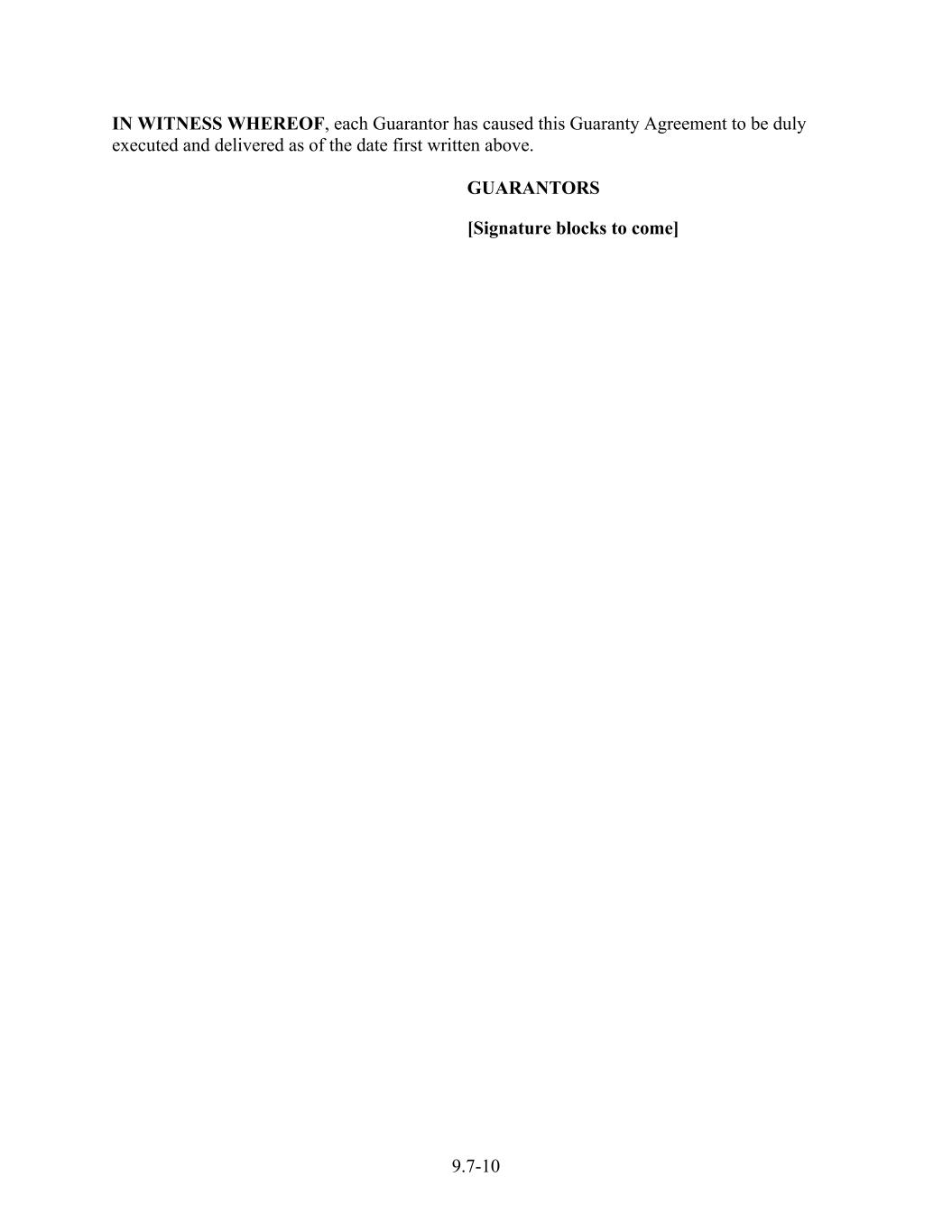 9.7-10 IN WITNESS WHEREOF, each Guarantor has caused this Guaranty Agreement to be duly executed and delivered as of the date first written above. GUARANTORS [Signature blocks to come]