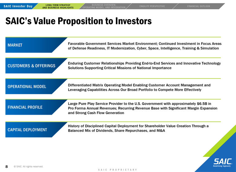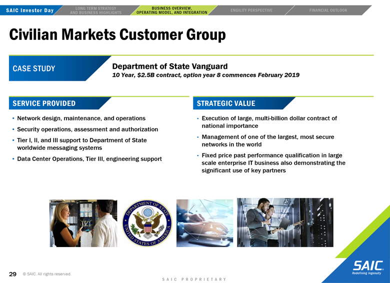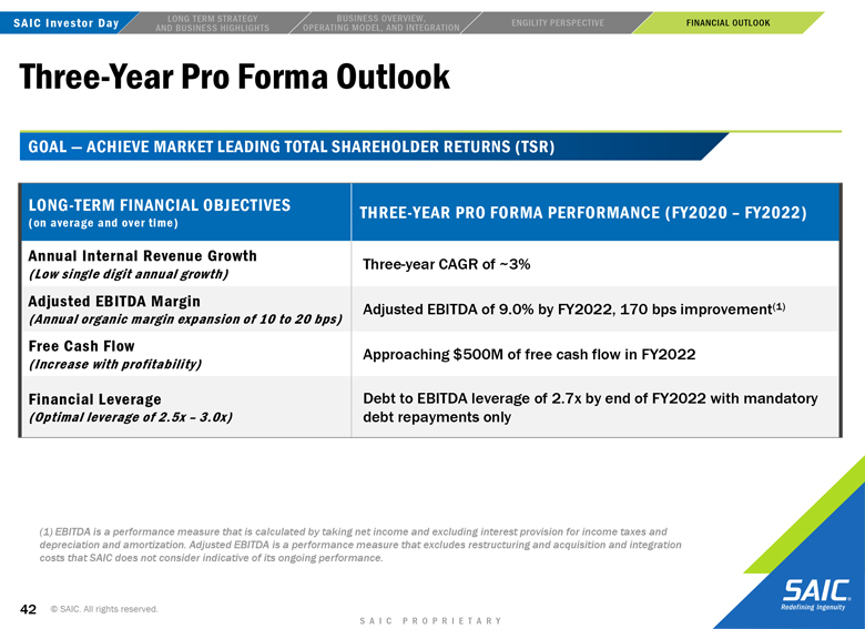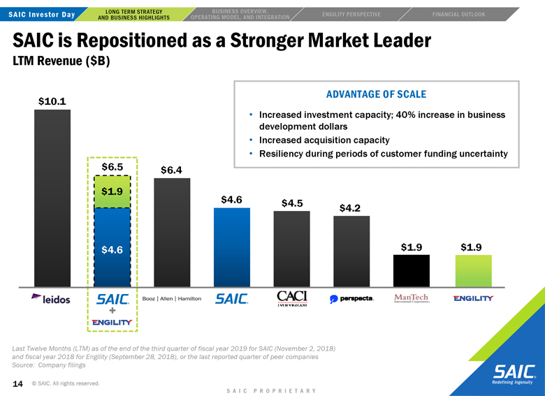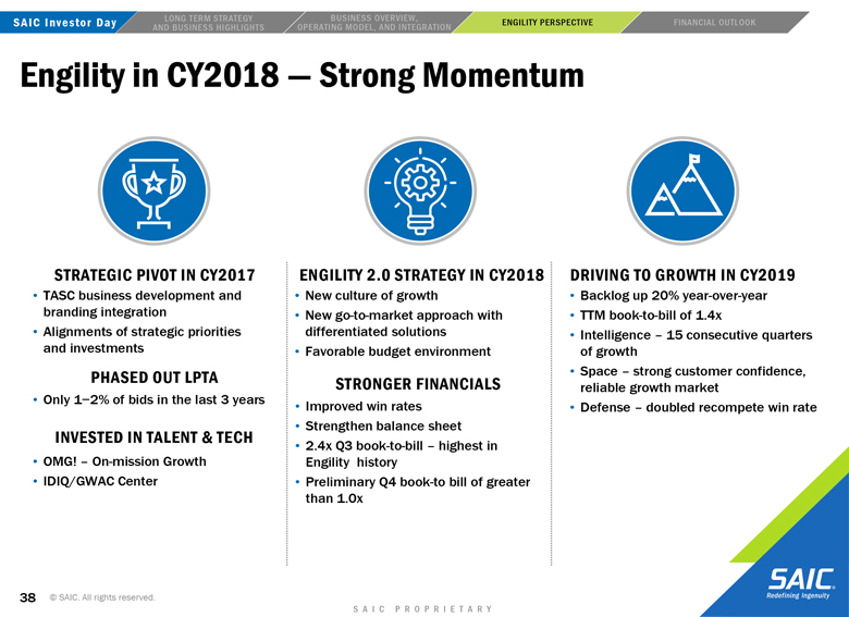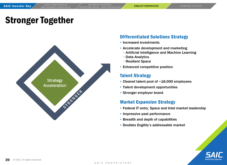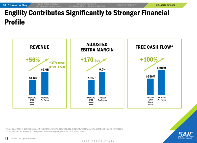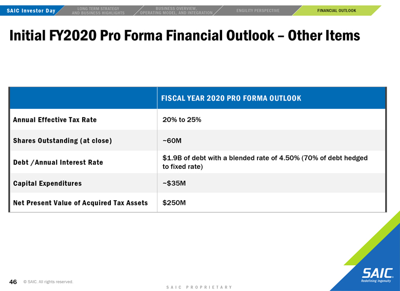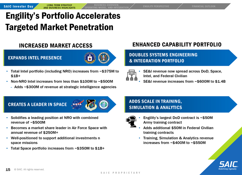 “forward-looking” information within the meaning of the Private Securities Litigation Reform Act of 1995 that involves risks and uncertainties concerning the proposed transaction between SAIC and Engility, SAIC’s and Engility’s expected