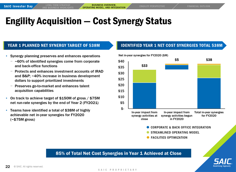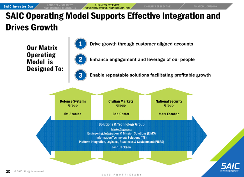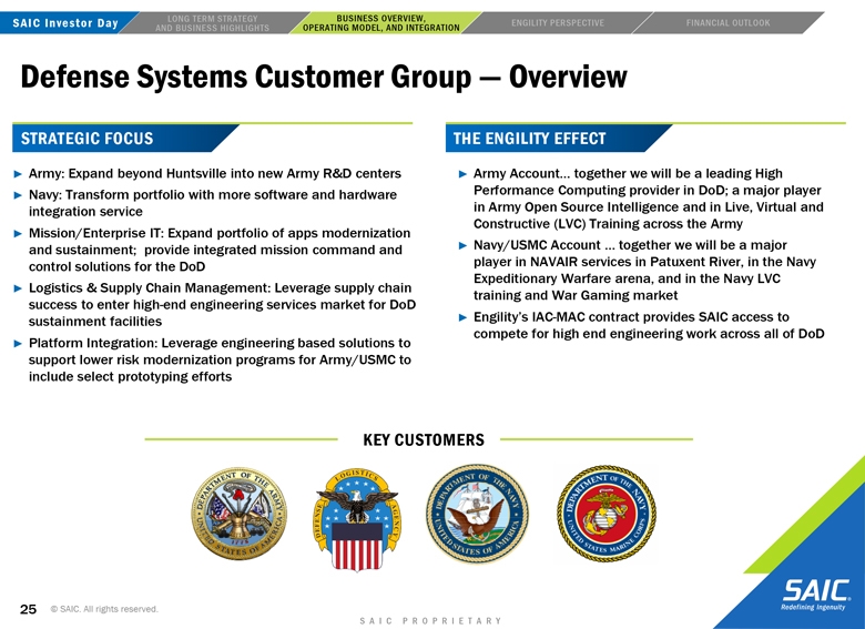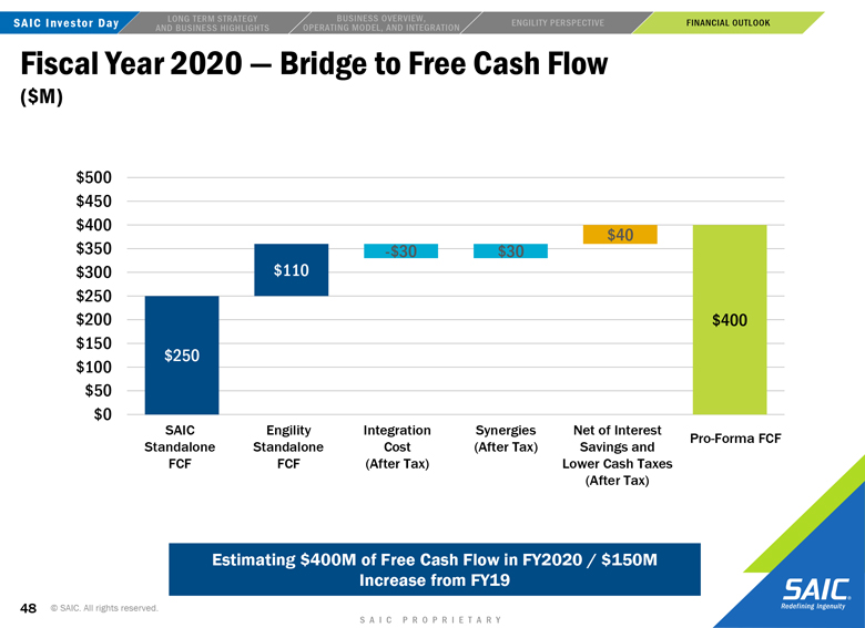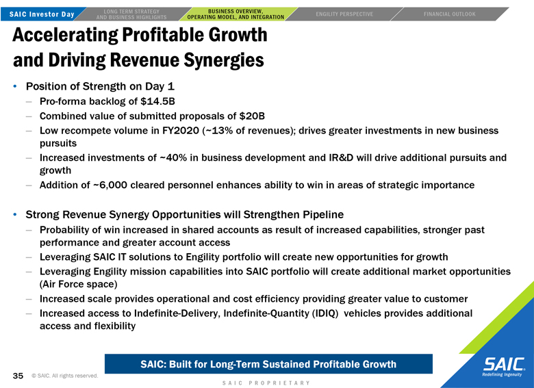 to the closing of the transaction may not be satisfied; the risk that Engility will not be integrated successfully into SAIC following the consummation of the proposed transaction and the risk that revenue opportunities, cost savings, synergies