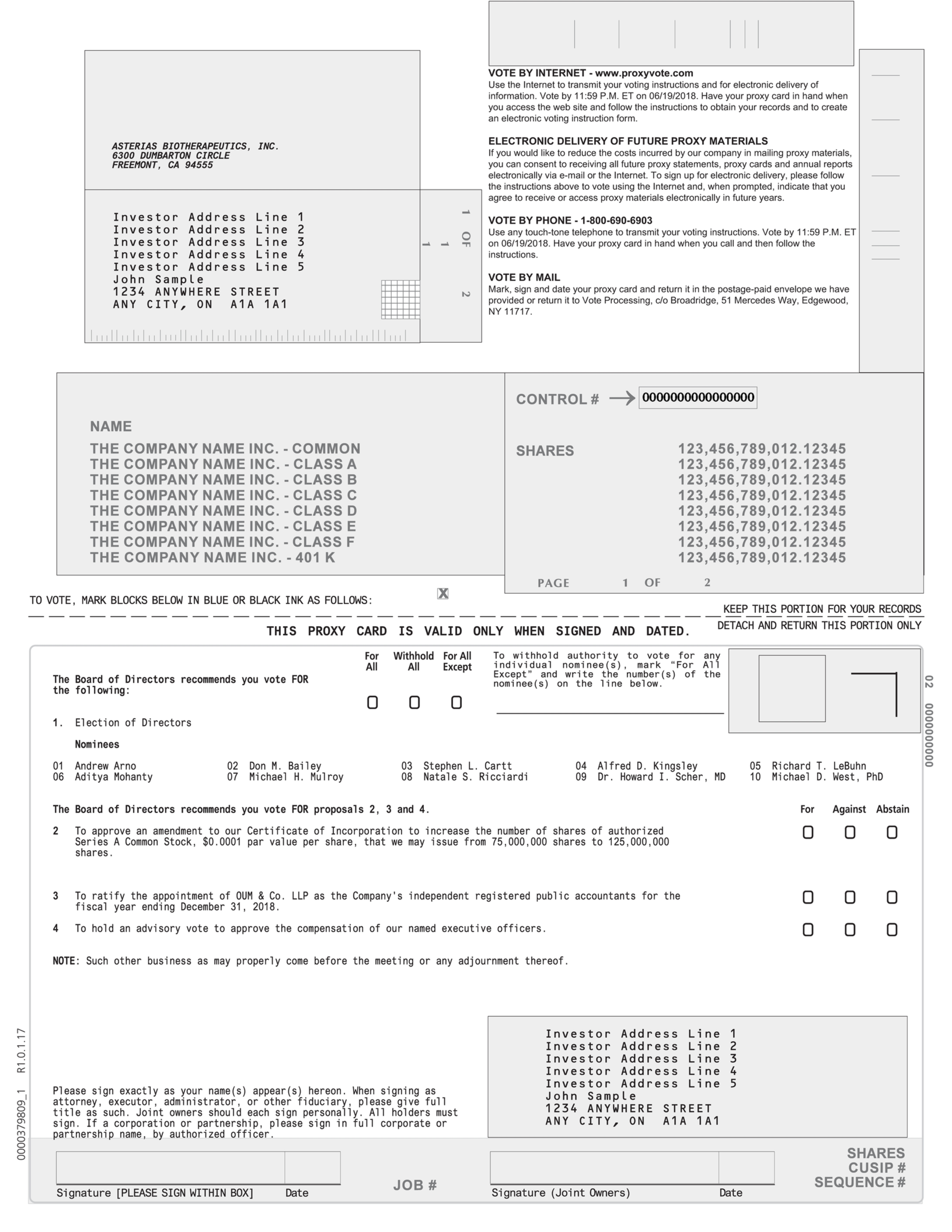 If you plan on attending the Annual Meeting in person, we encourage you to email us in advance at InvestorRelations@asteriasbio.com, so that we can add your name to the list of attendees for building security purposes.