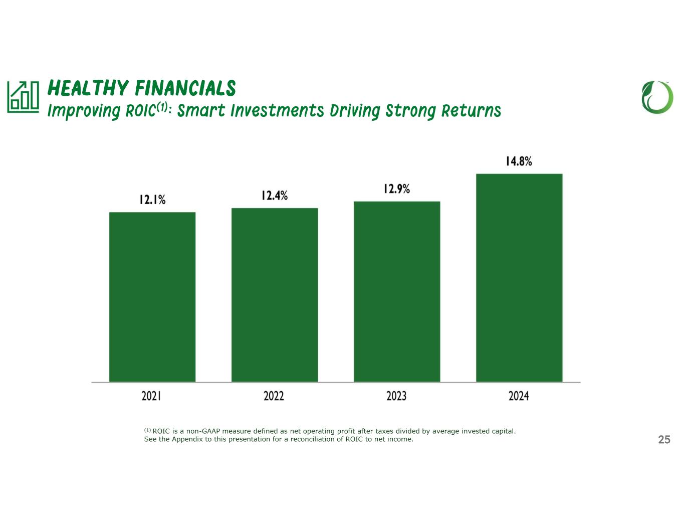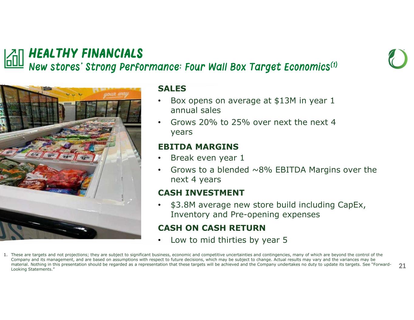 Attractive New Store Economics ~10%-unit growth(2) Low single digit comps Stable EBIT Margins off a Higher Base Low Double-Digit Earnings Growth and Expansion of ROIC (1) These are targets and not projections; they are subject to significant business, economic and competitive uncertainties and contingencies, many of which are beyond the control of the Company and its management, and are based on assumptions with respect to future decisions, which may be subject to change. Actual results may vary and the variances may be material. Nothing in this presentation should be regarded as a representation that these targets will be achieved and the Company undertakes no duty to update its targets. See “Forward-Looking Statements.” (2) Expect to open at least 35 new stores in 2025 20 HEALTHY FINANCIALS Long-term Strategic Financial Targets(1)