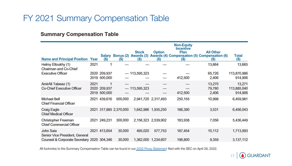 FY 2021 Summary Compensation Table All footnotes to the Summary Compensation Table can be found in our 2022 Proxy Statement filed with the SEC on April 28, 2022. 17