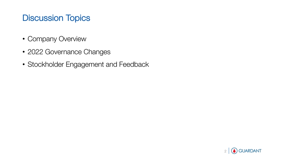 Discussion Topics • Company Overview • 2022 Governance Changes • Stockholder Engagement and Feedback 2