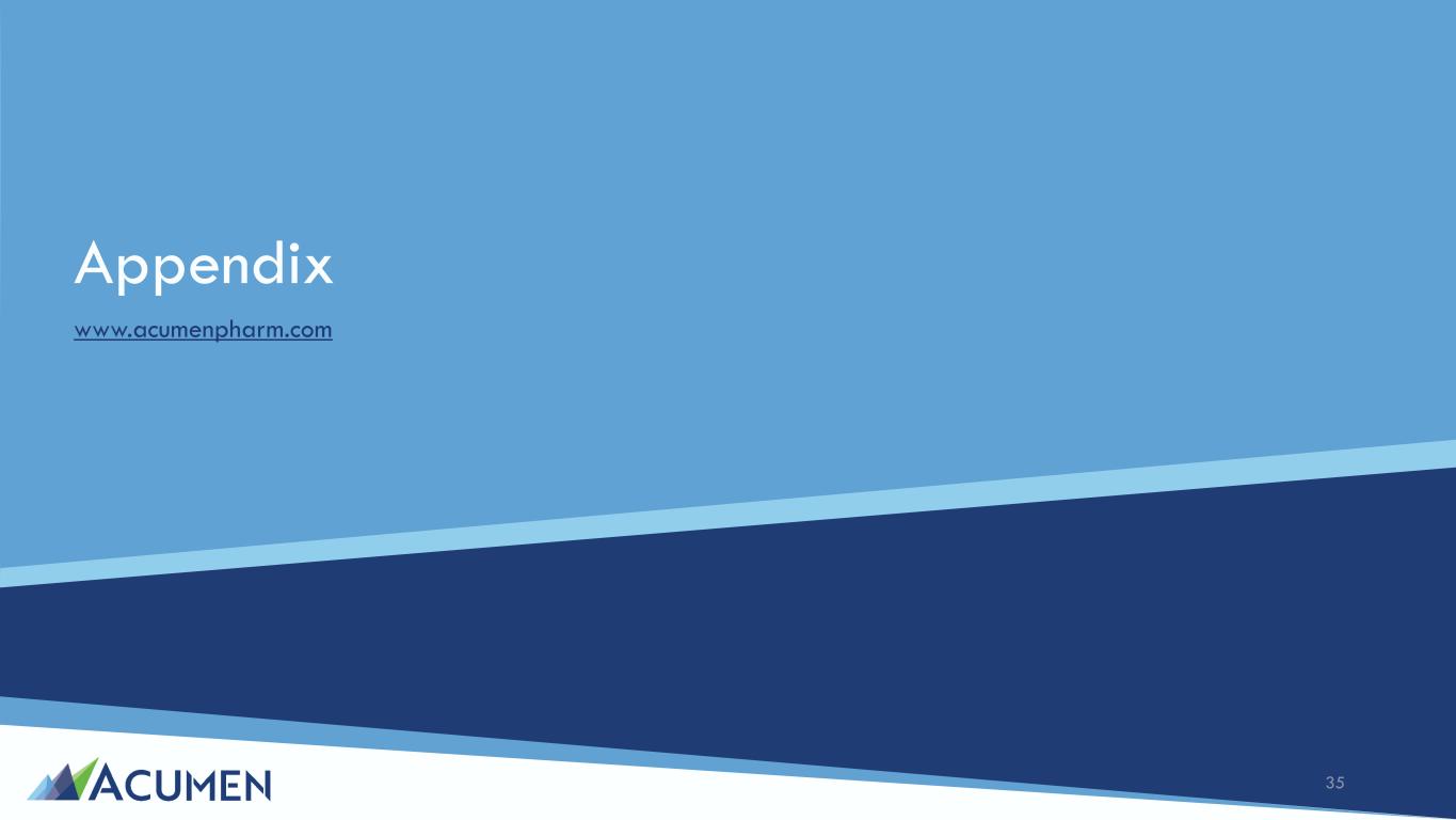 ✓ Significant and growing Alzheimer’s population in need of additional treatment options ✓ Synaptotoxic AβOs appear early in Alzheimer’s Disease and contribute to its pathophysiological processes; sabirnetug demonstrates high selectivity for AβOs in AD patients ✓ Positive Phase 1 data strengthen potential for sabirnetug to offer next-generation efficacy and safety ✓ Significant interest in ALTITUDE-AD, a Phase 2 study investigating sabirnetug, evidenced by rapid enrollment ✓ Enhanced Brain DeliveryTM program augments portfolio optionality, leveraging Acumen capabilities and assets Acumen Positioned to Deliver Potential Next Generation Treatment for Early AD 34 Key Takeaways Next Steps ❑ EBDTM program pre-clinical candidate (PCC) selection expected in early 2026 ❑ Topline results from ALTITUDE-AD Phase 2 IV study evaluating the clinical efficacy and safety of sabirnetug in patients with MCI or mild dementia due to Alzheimer’s expected in late 2026