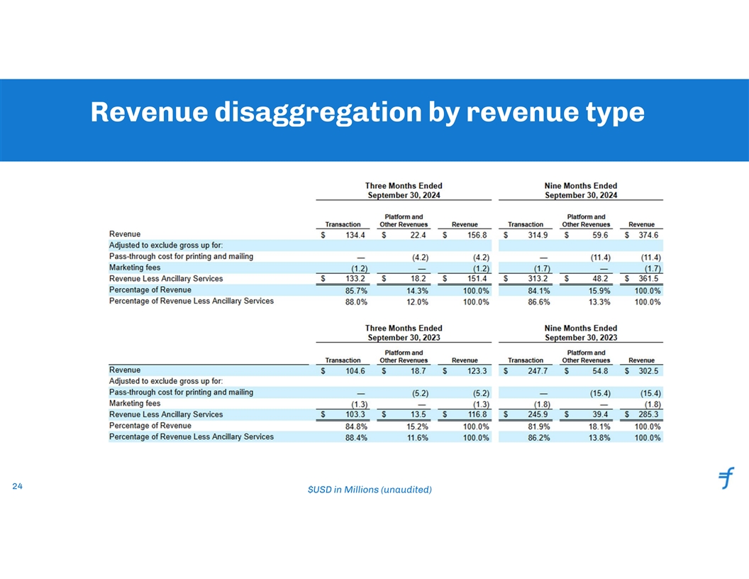 Revenue disaggregation by revenue type 24 $USD in Millions (unaudited)