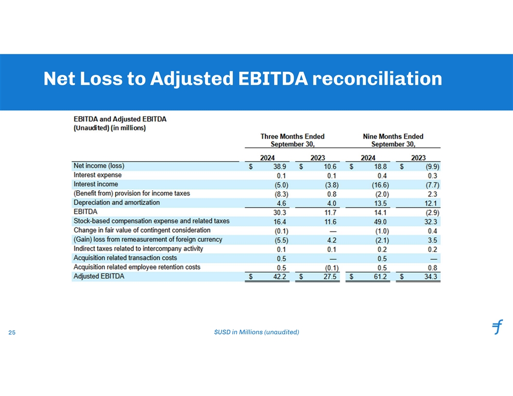 Net Loss to Adjusted EBITDA reconciliation 25 $USD in Millions (unaudited)