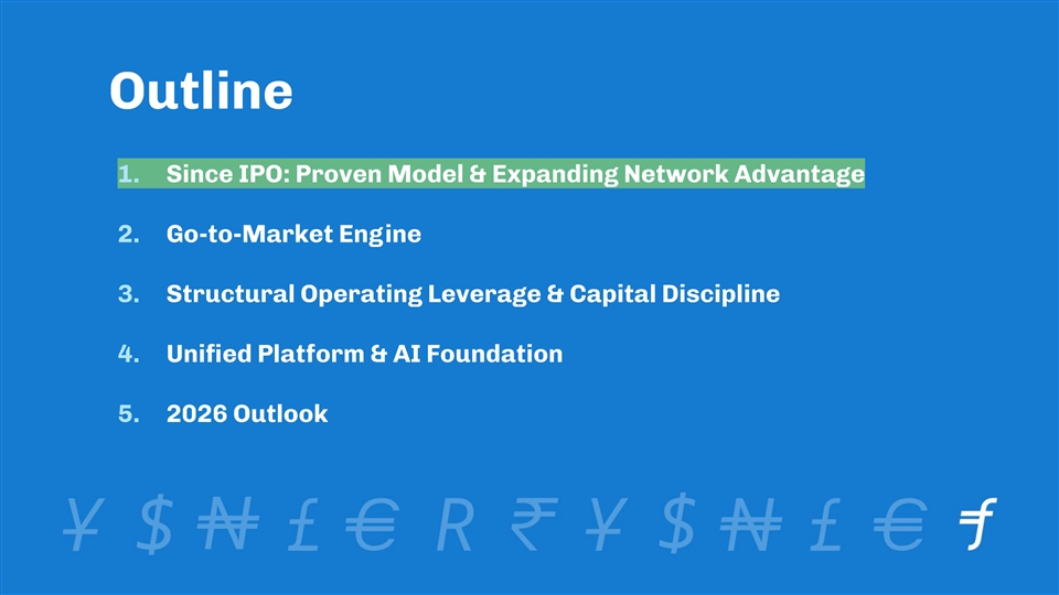 Outline 1. Since IPO: Proven Model & Expanding Network Advantage 2. Go-to-Market Engine 3. Structural Operating Leverage & Capital Discipline 4. Unified Platform & AI Foundation 5. 2026 Outlook