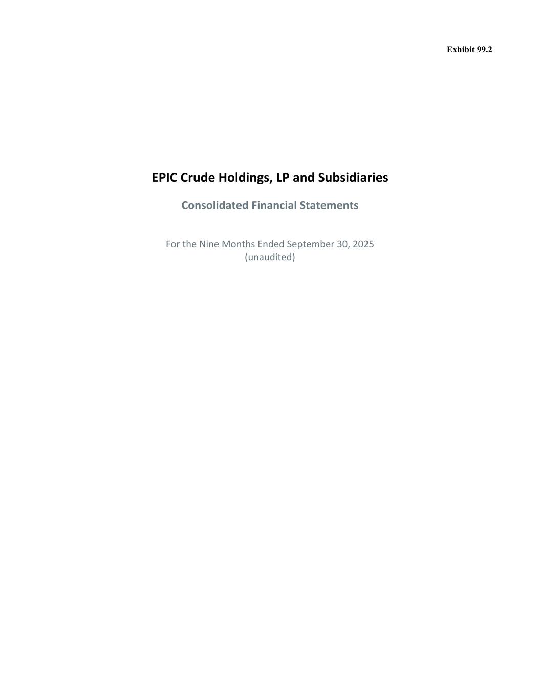 .2 EPIC Crude Holdings, LP and Subsidiaries Consolidated Financial Statements For the Nine Months Ended September 30, 2025 (unaudited)