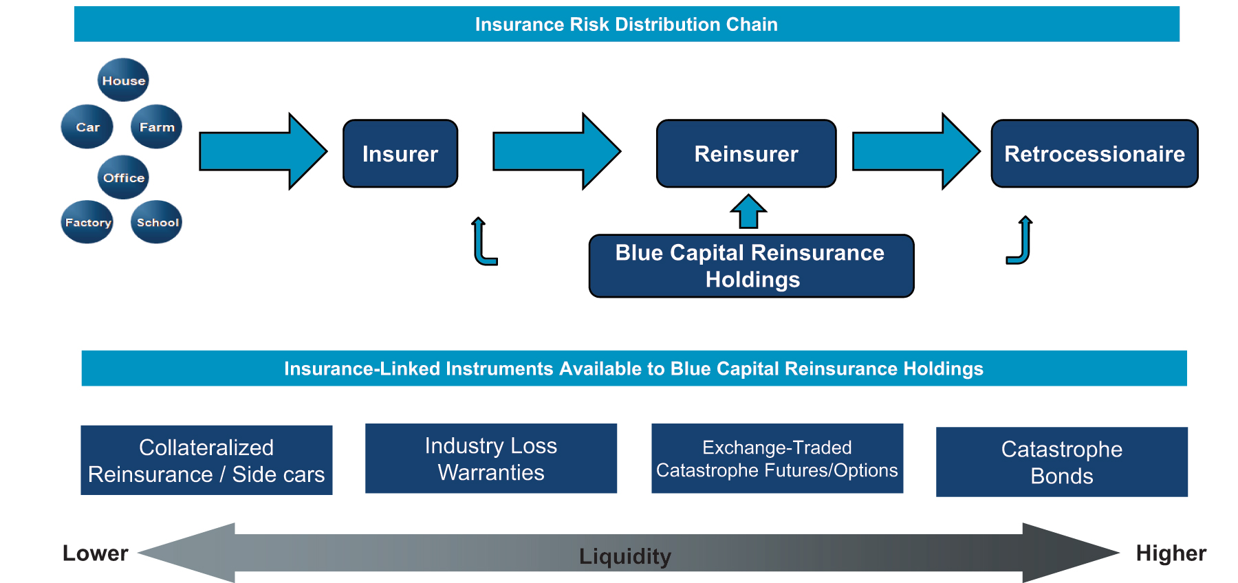 We will implement our strategy through our wholly owned subsidiaries Blue Capital Re, a Bermuda exempted company registered as a Class 3A insurer pursuant to the Insurance Act of 1978 as amended (which we refer to as the “Insurance Act”) that will predominantly enter into collateralized reinsurance contracts, and Blue Capital Re ILS, a Bermuda exempted company that will predominantly conduct hedging and other investment activities, including entering into industry loss warranties and purchasing catastrophe bonds.