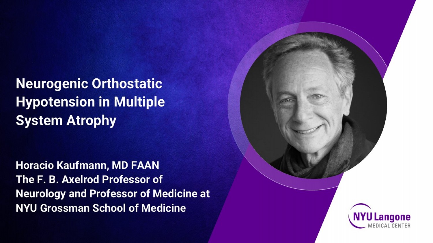 Neurogenic Orthostatic Hypotension in Multiple System Atrophy Horacio Kaufmann, MD FAAN The F. B. Axelrod Professor of Neurology and Professor of Medicine at NYU Grossman School of Medicine