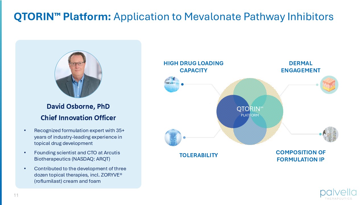 10 QTORIN Pitavastatin Formulation Development Dr. David Osborne, Chief Innovation Officer QTORIN Pitavastatin for Disseminated Superficial Actinic Porokeratosis