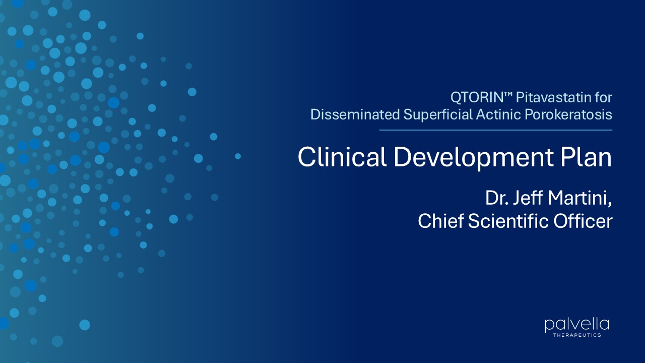 14 Clinical Development Plan Dr. Jeff Martini, Chief Scientific Officer QTORIN Pitavastatin for Disseminated Superficial Actinic Porokeratosis