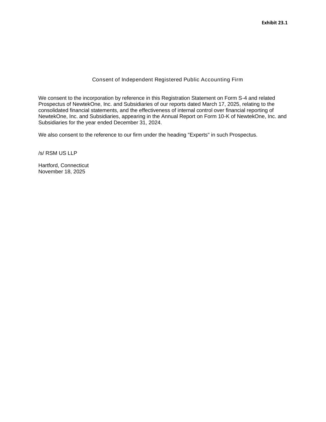 Exhibit 23.1 Consent of Independent Registered Public Accounting Firm We consent to the incorporation by reference in this Registration Statement on Form S-4 and related Prospectus of NewtekOne, Inc. and Subsidiaries of our reports dated March 17, 2025, relating to the consolidated financial statements, and the effectiveness of internal control over financial reporting of NewtekOne, Inc. and Subsidiaries, appearing in the Annual Report on Form 10-K of NewtekOne, Inc. and Subsidiaries for the year ended December 31, 2024. We also consent to the reference to our firm under the heading "Experts" in such Prospectus. /s/ RSM US LLP Hartford, Connecticut November 18, 2025