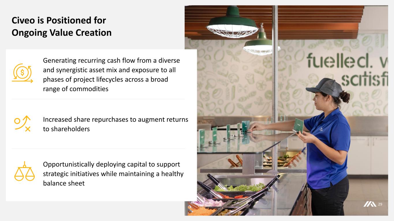 29 Civeo is Positioned for Ongoing Value Creation Generating recurring cash flow from a diverse and synergistic asset mix and exposure to all phases of project lifecycles across a broad range of commodities Increased share repurchases to augment returns to shareholders Opportunistically deploying capital to support strategic initiatives while maintaining a healthy balance sheet