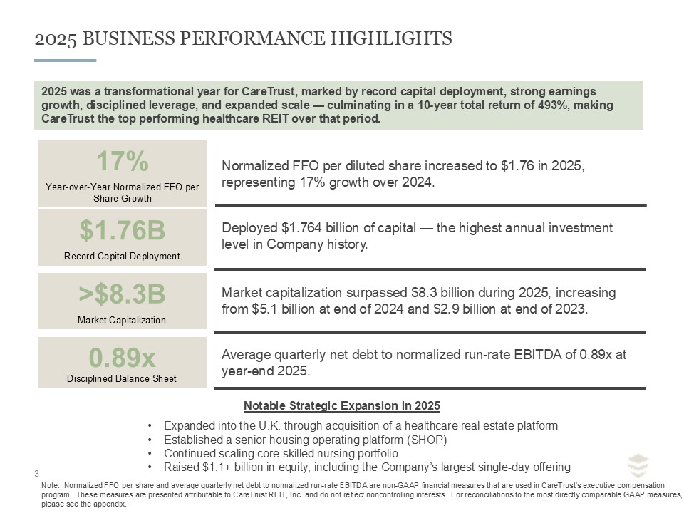 Normalized Run Rate EBITDA attributable to CareTrust REIT, Inc. for the four quarters in the year ended December 31, 2025.