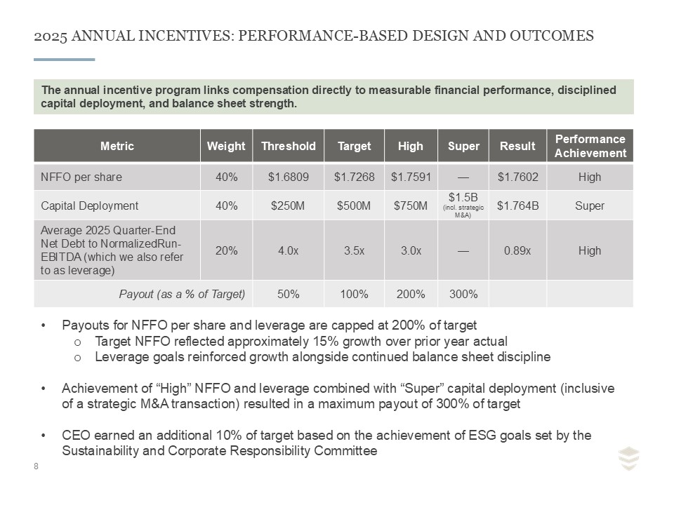 Assumes the net proceeds from the future expected settlement of shares sold under equity forward contracts through the Company's ATM program reduces outstanding debt and assumes the shares were issued.